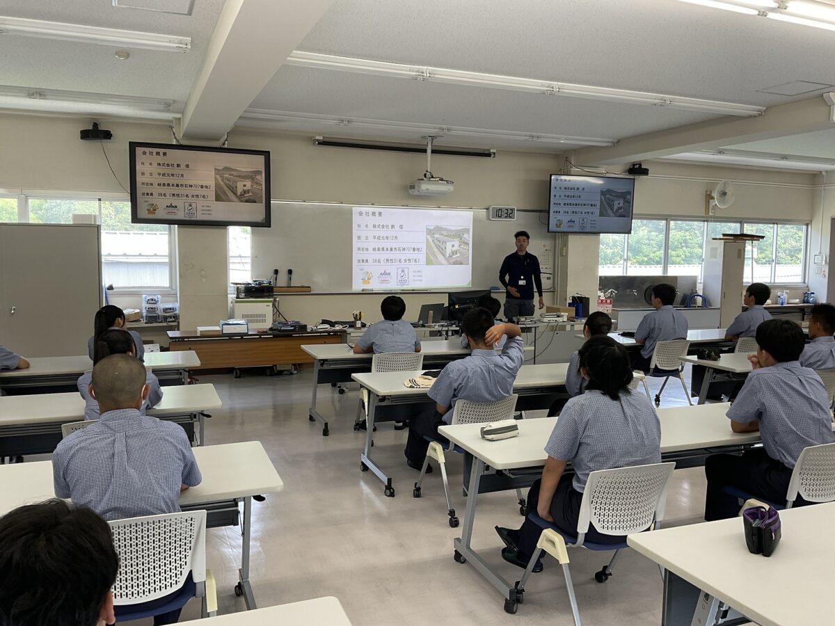 建設産業(建築・土木)の役割や魅力について知ってもらい、将来の進路選択の参考にしてもらうことを目的として、関商工高校の生徒を対象に「出前授業」を実施しました。