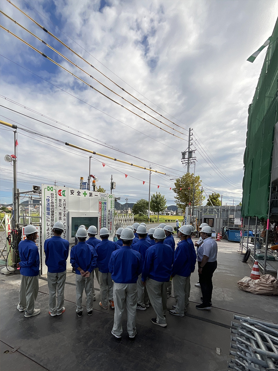 工事施工者の方から現場事務所で工事概要等を説明していただいたあと、工事現場へ行き工事の状況を見学しました。