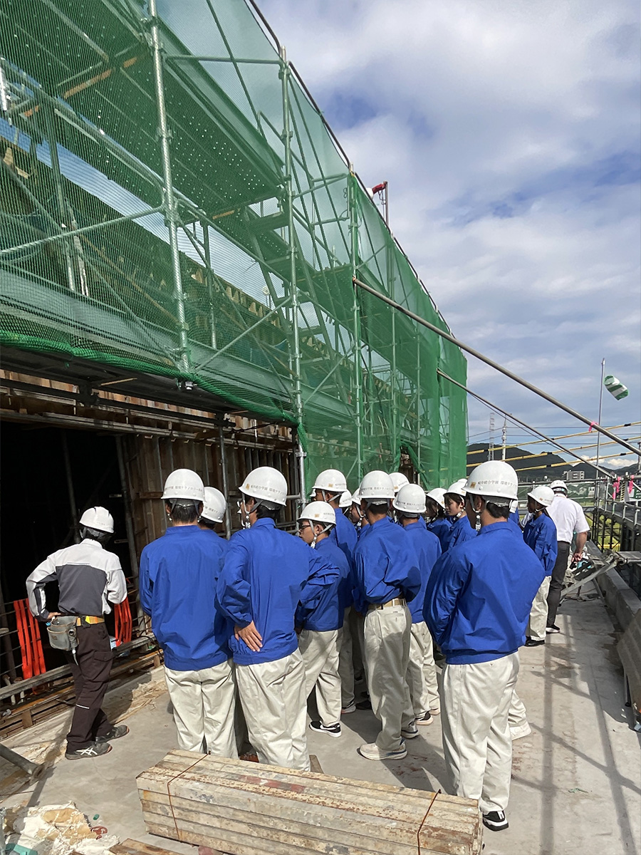 見学後生徒からは、「実際に働く環境や設備が見られて、就職を決めるときの参考になって良かった」「普段、教科書や授業で見ている構造や現場が生で見られて、こうやって造っていると感じられて嬉しかった」「建物がどのようにできるのかを理解して興味が持てた」などの感想をいただきました。