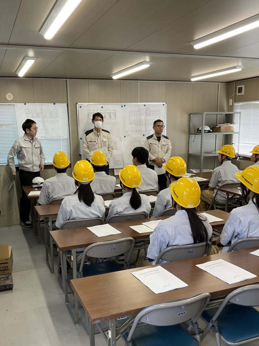 岐阜工業高校の生徒を対象に、建築工事現場見学会を実施し、岐阜県地方競馬組合(笠松競馬場)の厩舎の工事現場を見学しました。