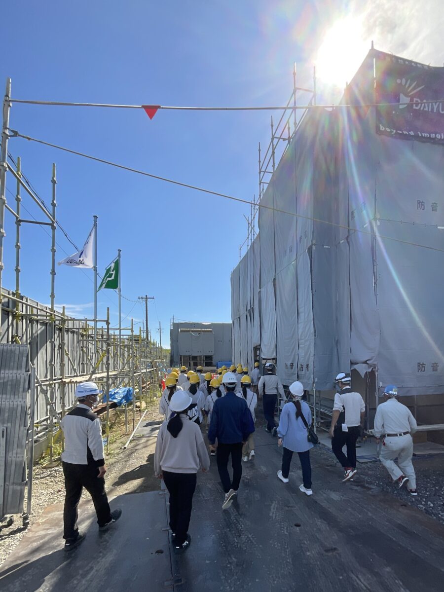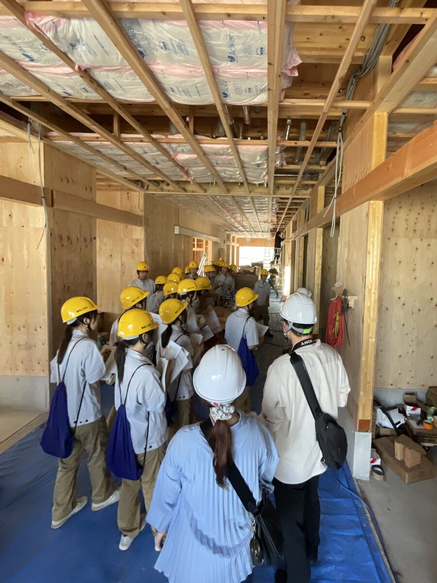 見学後生徒からは、「学校で習ったことなどと実際の建物と繋ぎ合わせてみることができとても参考になった」「実際に現場の作業を見学することでいろんなことを見たり聞いたりできて、記憶に残る見学会になった」「木造建築について改めて知ることができたし、これを機会に進路選択の一つの出来事として決めていきたいと思った」などの感想をいただきました。