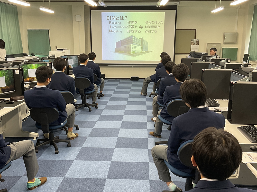 BIM(Building Information Modeling)の基本知識を学び、実際の操作体験を通じて、建築への興味を深め、将来の建築業の担い手となってもらうことを目的として、高山工業高校建築インテリア工学科の生徒を対象にBIMの操作研修を実施しました。