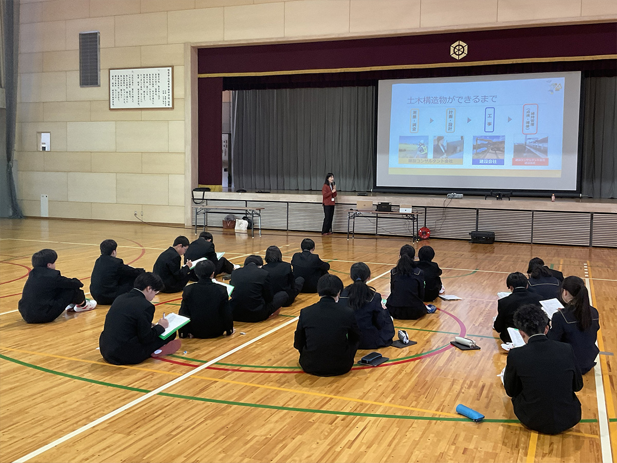 開催後のアンケートでは、「今まで持っていたイメージと違った話を聞いてよかった」「『つくる仕事』だけではなく災害から『守る仕事』をやっていることがわかった」「今までは、建設業は現場だけのことで力仕事だと思っていたけど、建物を作るために計画を立てたりなどのさまざまな職種があることがわかった」「建築したものでどのような建物があるのかいろいろ見てみたいと思った」などの感想をいただきました。