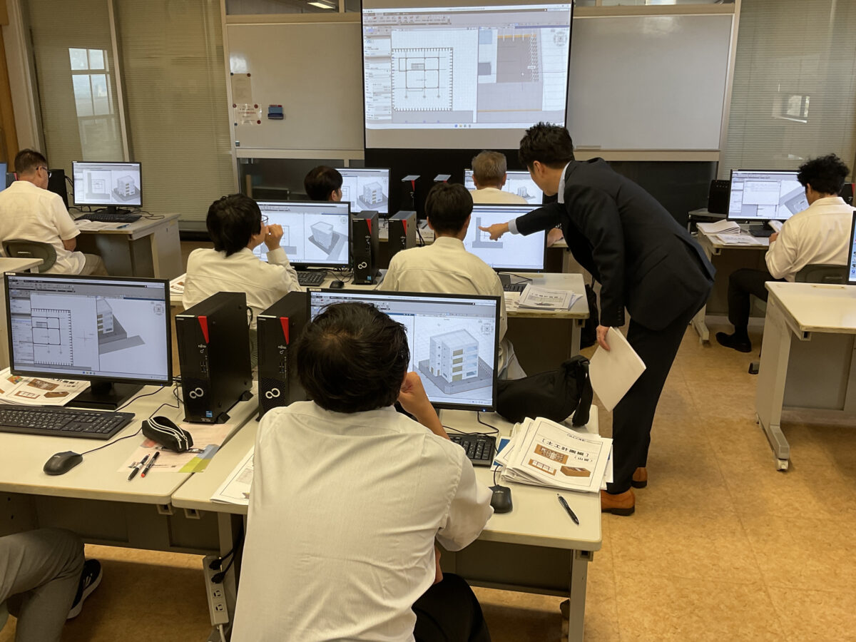 研修では、BIMソフトウェア「GLOOBE」を用いて、モデリング、施工計画の作成など一連の基本操作を習得いただきました。