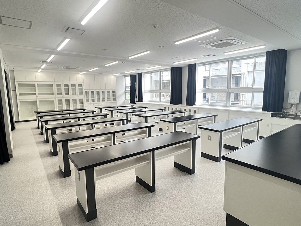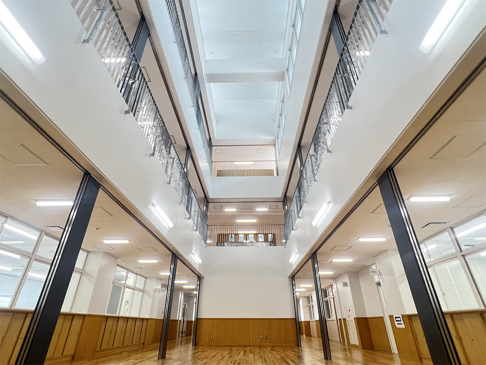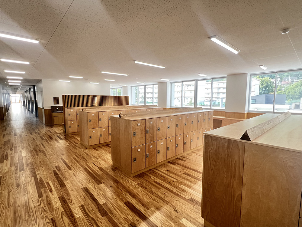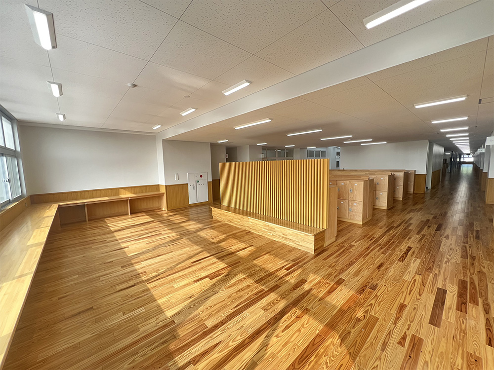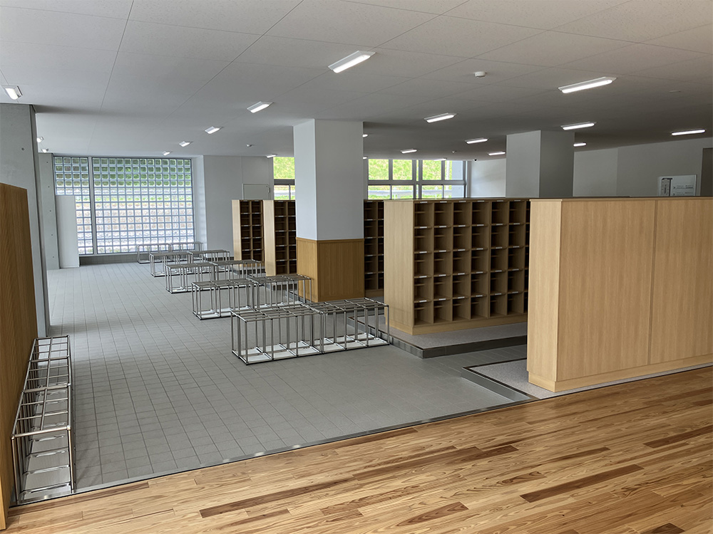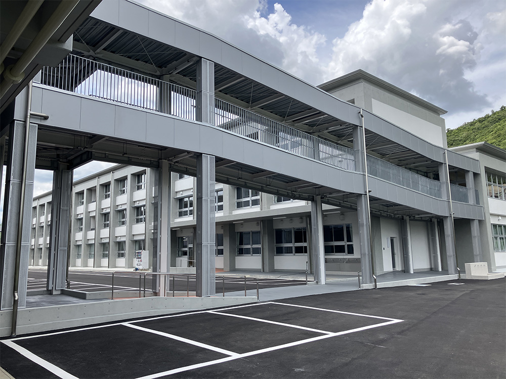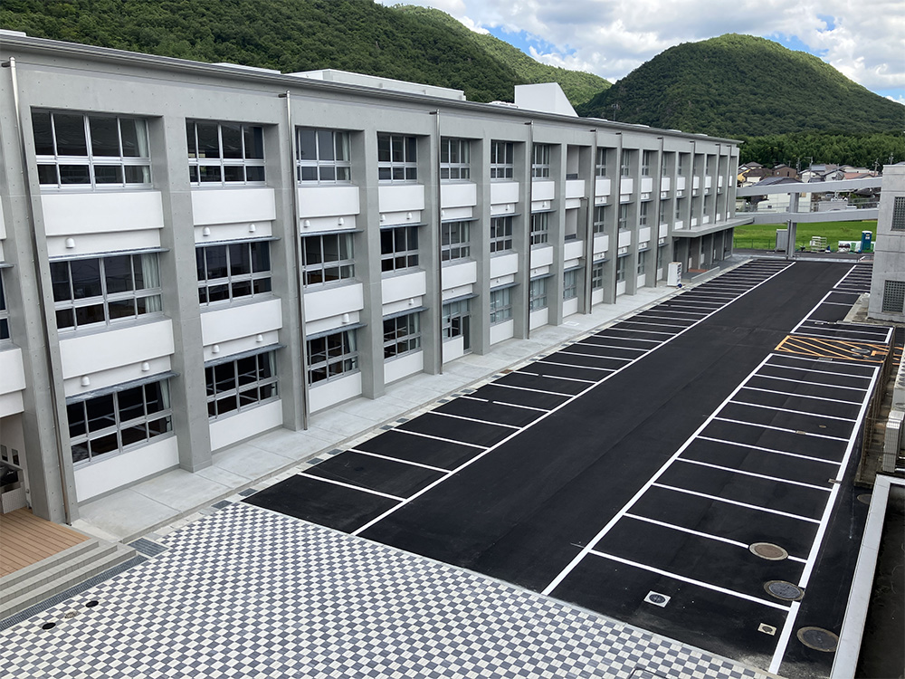 今回の岐山高校北舎改築工事では、北舎だけではなく渡り廊下や自転車置場なども合わせて整備し、新しく建てられました。また、本館棟の内部の改修工事も行われました。