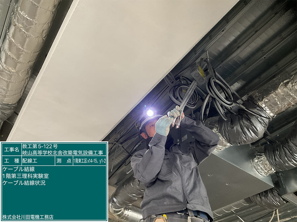 建物が完成すると大部分は隠れてしまいますが、天井内や壁内などにはたくさんの配線が張り巡らされています。