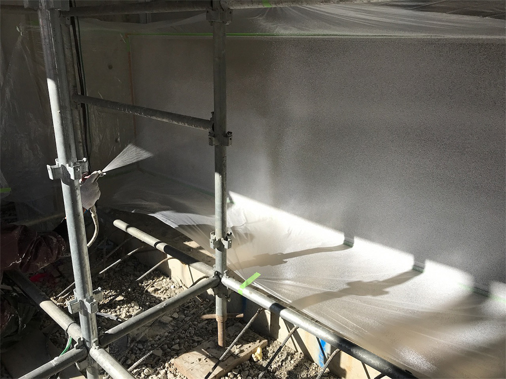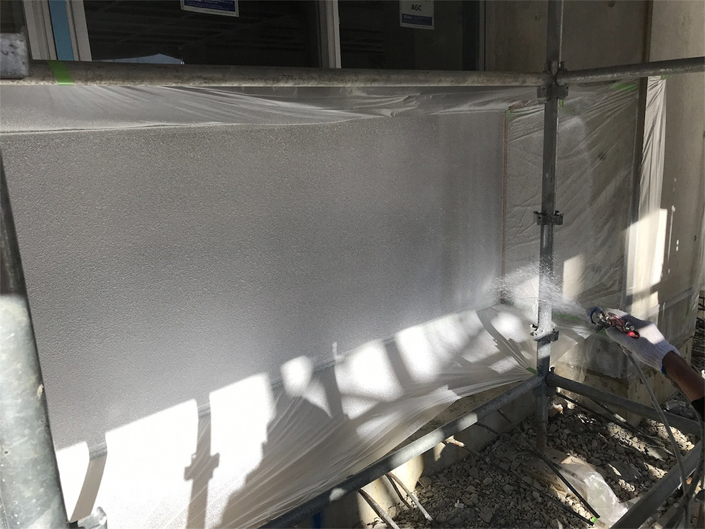建物の躯体(屋根・柱・梁・壁など)に塗装をしていきます。塗装は建物の印象(デザイン)を左右するだけではなく、紫外線や雨水の侵入、腐食などから躯体を守ってくれ、建物の寿命を長くする役割も担っています。また、遮熱や耐火などといった機能を有した塗料もあり、建物の快適性や安全性を高めてくれます。