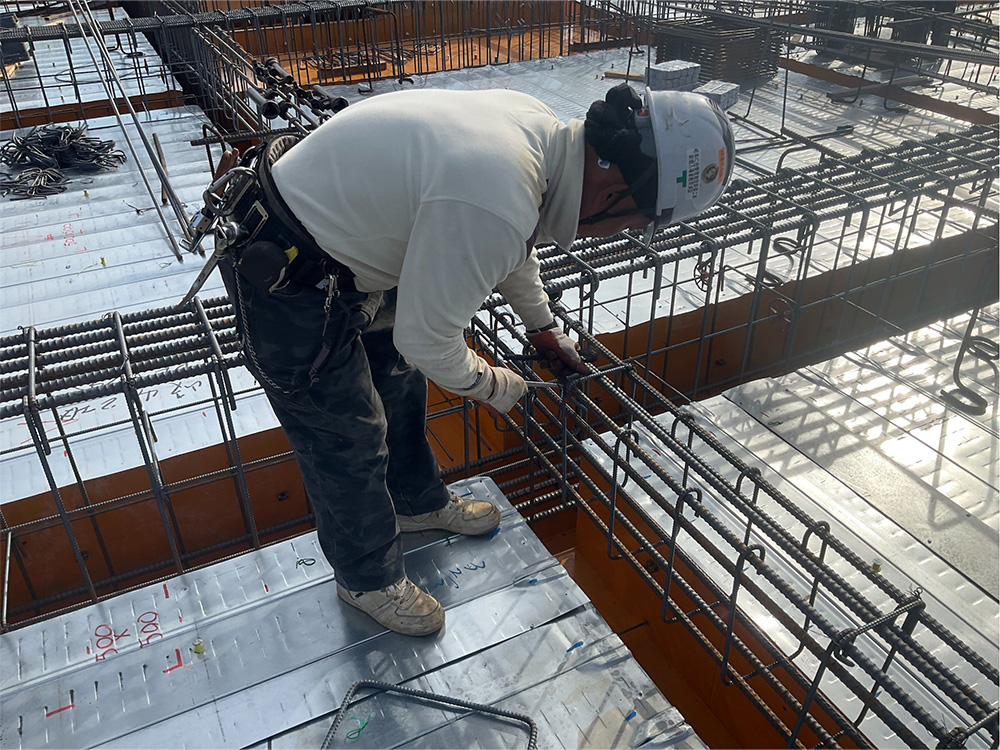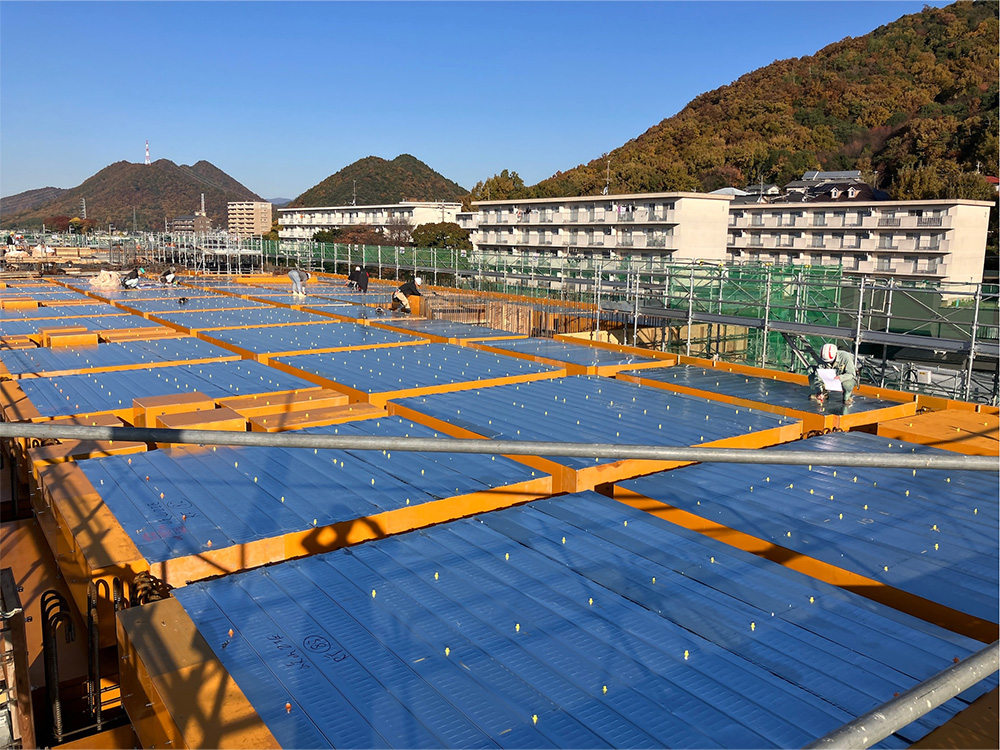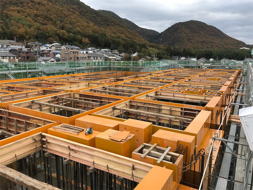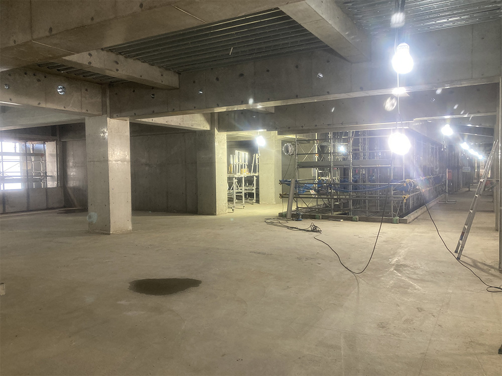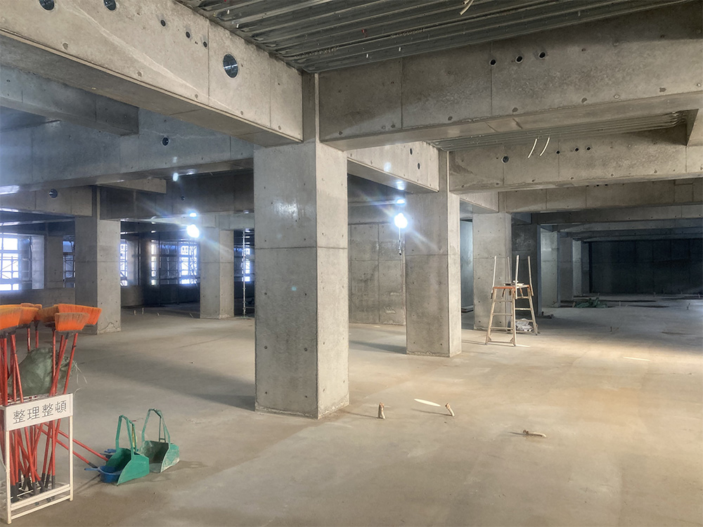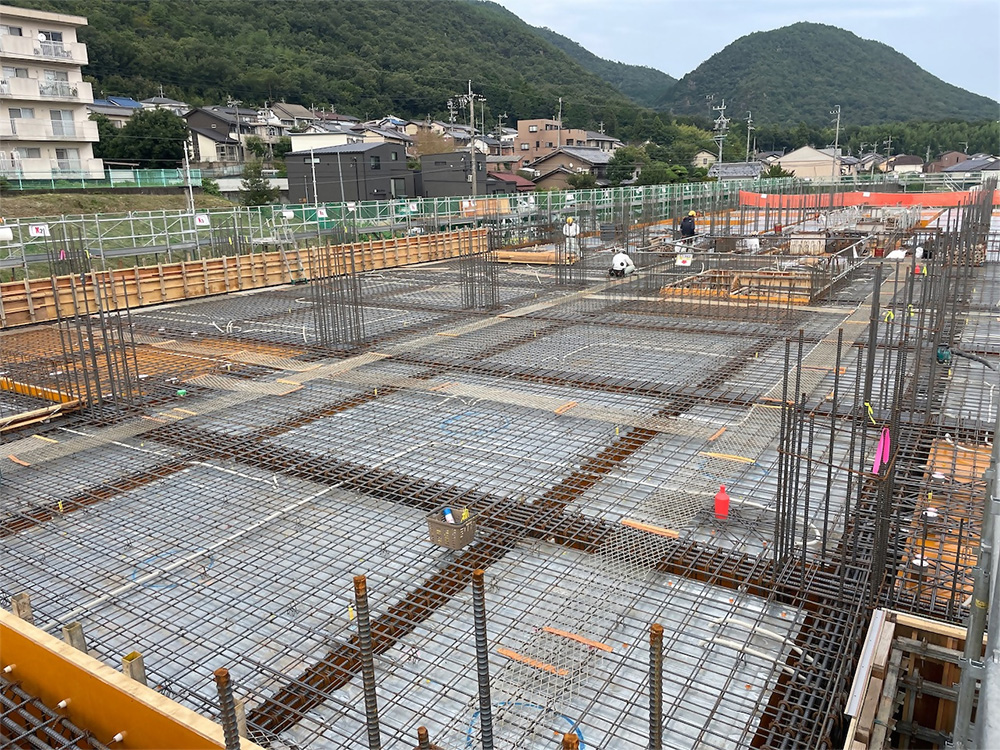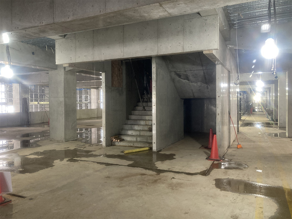 躯体工事は下の階から「鉄筋・型枠 → コンクリート打設」の工程を繰り返し、上の階へと工事を進めていきます。